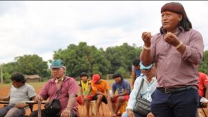 A’uwẽ leader Silvério Tsereburã Tserenhibru (1988-2025) speaks emphatically against FICO in a meeting with government authorities and INFRA S.A. representatives ...